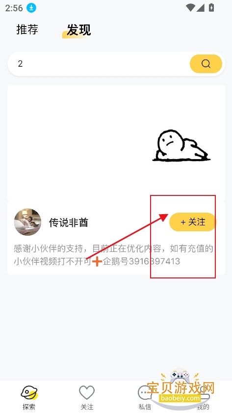 3、进入【发现】界面,可以在搜索框输入关键词,检索创作者,关注喜欢的创作者