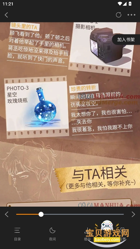 书架管理与互动交流,收藏与书架分类管理,支持批量整理与排序。内置评论交流板块,可分享剧情、交流阅读感受。