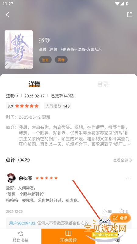 2、选定漫画进入阅读界面,点击【开始阅读】就可以进行在线阅读