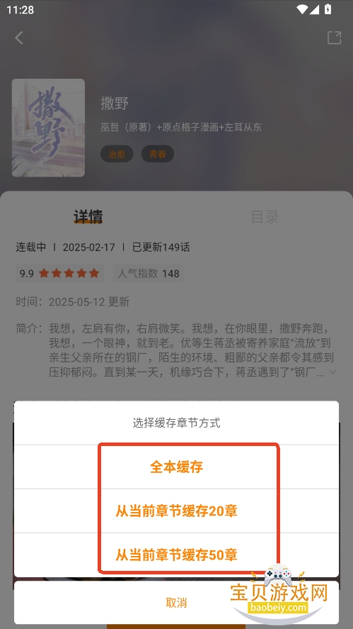 3、点击右侧【下载按钮】就可以选择章节进行缓存下载
