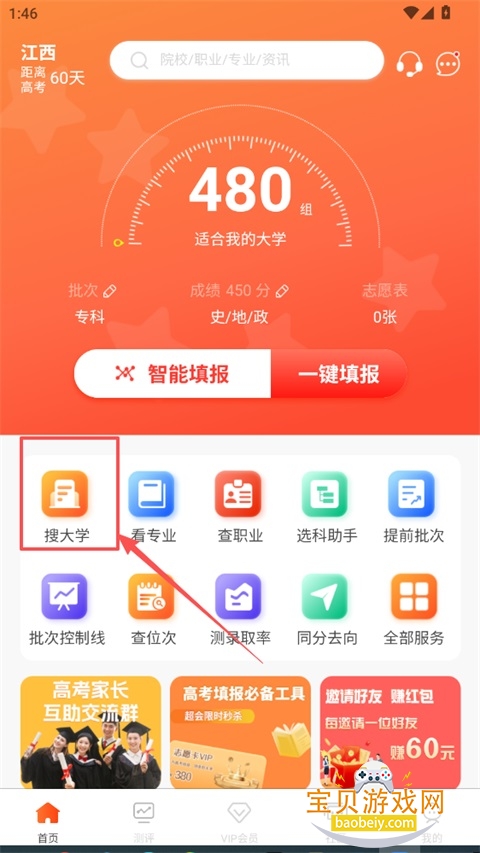 1、进入首页,点击搜大学图标,进入院校列表页;