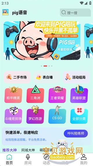 Pig语音是为年轻人打造的语音社交平台,以实时语音为核心,融合游戏开黑、兴趣交友等场景,构建真实社交空间,实现高效匹配与深度互动,禁止未成年人注册,新版修复bug并新增赛事报名页面。