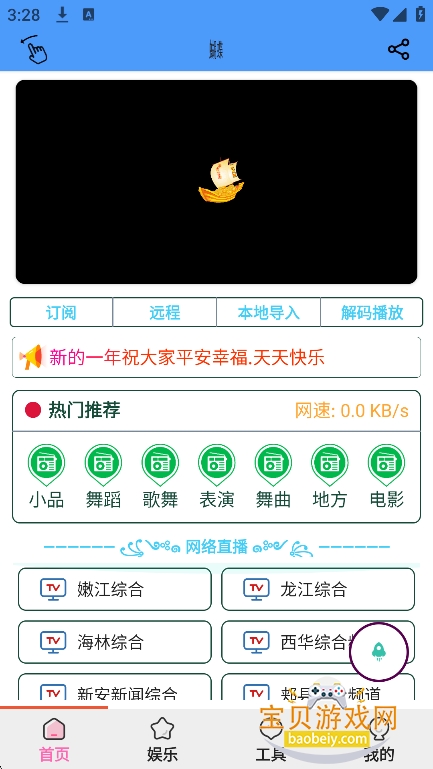 1、进入【娱乐】界面,选择网络直播