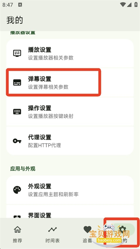 1、打开App,进入【我的】页面,向下滑动找到【弹幕设置】并点击。