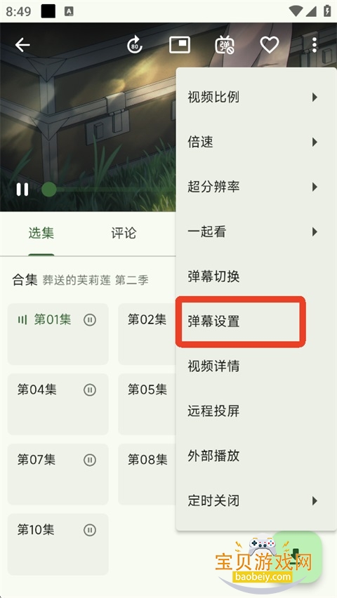 2、在下拉菜单中,点击【弹幕设置】。