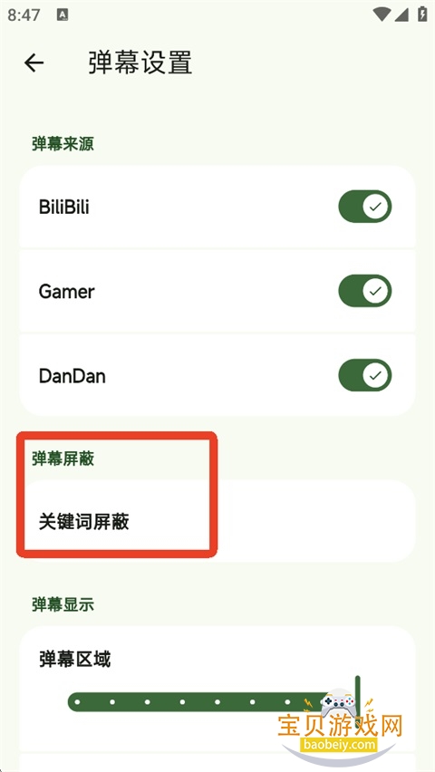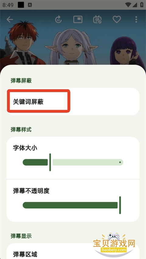 2、在【弹幕设置】页面,点击【关键词屏蔽】。