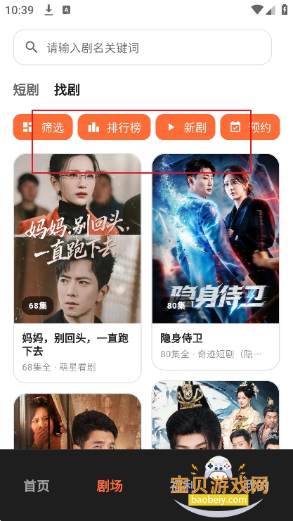 2、进入【剧场】界面,可以筛选更多短剧内容