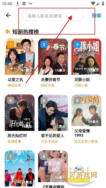 4、点击搜索框,还可以输入关键词,精准检索短剧