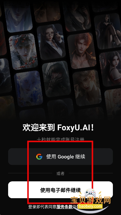 1、进入登录界面,支持邮箱登录,或者谷歌账号登录