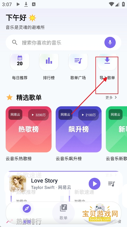 进入首页,点击功能栏【导入歌单】