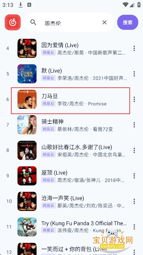 5、根据搜索结果,选择喜欢的音乐