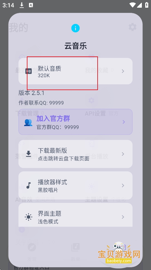 2、在设置界面,点击默认音质