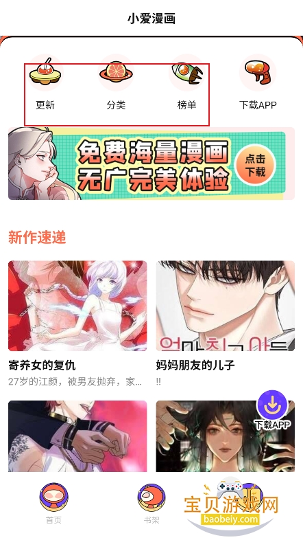 1、进入首页,可以查看更新,榜单,分类三个板块的漫画内容