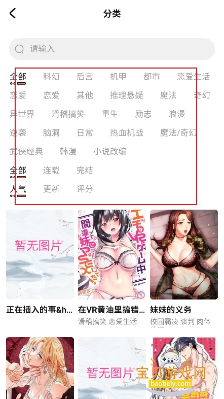 2、例如进入【分类】可以根据关键词标签分类,筛选你可能喜欢的漫画类型