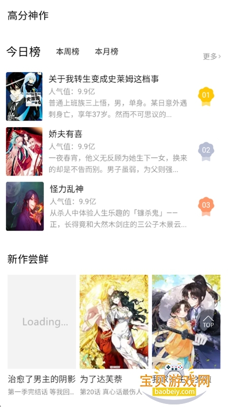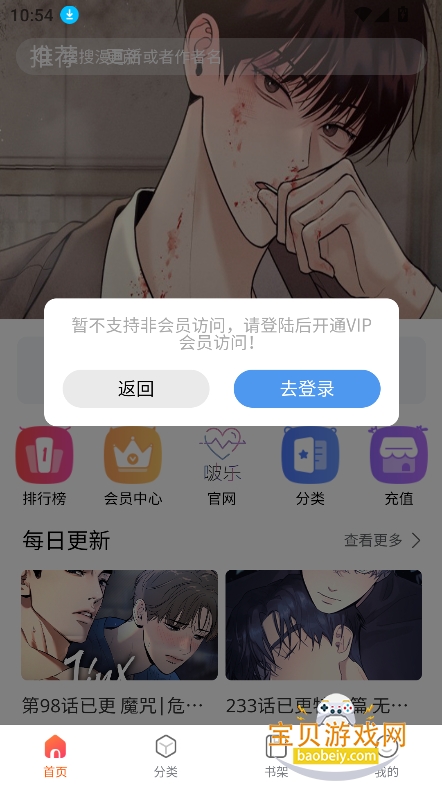 1、在宝贝游戏网下载安装啵乐漫画软件,打开进入首页