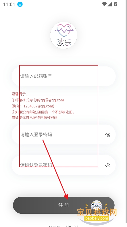 3、新用户直接点击【注册账号】输入邮箱,密码,无需验证,就可以注册成功