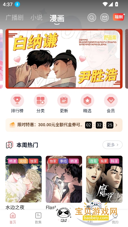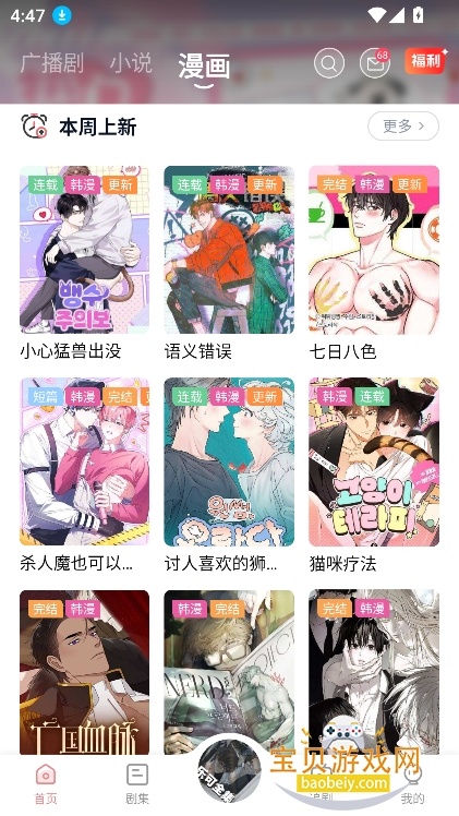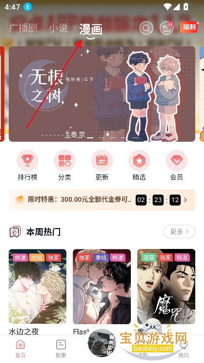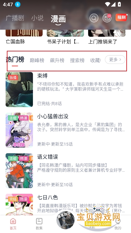 1、进入首页【漫画】板块,可以筛选近期热门漫画内容