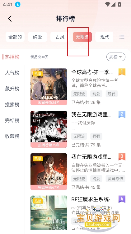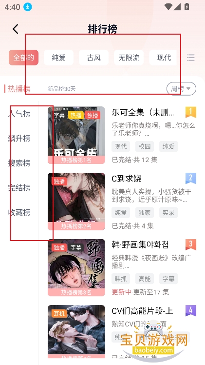 3、在更多页面,可以根据热榜,以及分类等筛选