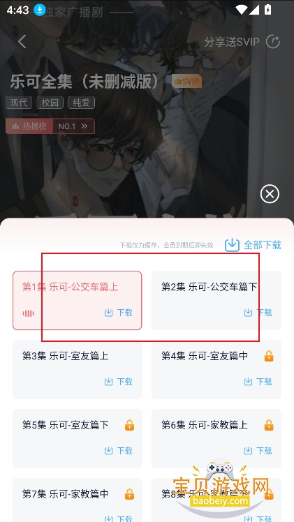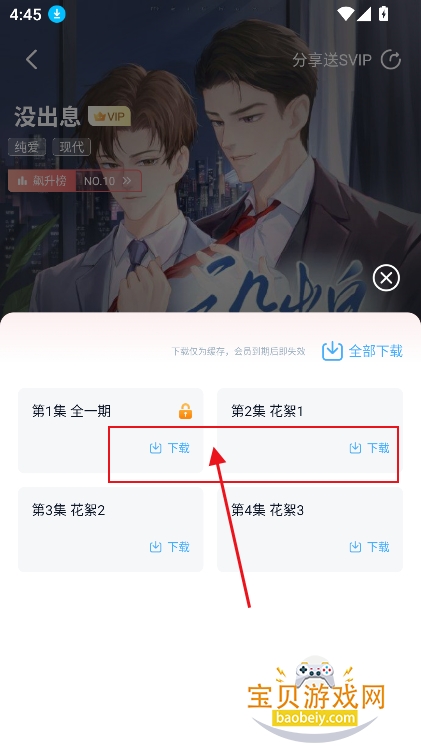 2、选择喜欢的章节,点击【下载】,或者点击【全部下载】