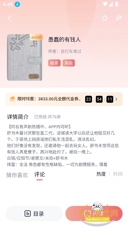 聆听fm广播剧官方下载正版,一款集合了小说,漫画,广播剧一体化娱乐内容的综合性视听平台,以精品广播剧为核心,覆盖多元题材,兼具权威性与丰富度。平台整合专业制作团队与优质IP资源,提供沉浸式听觉体验,满足不同用户的收听偏好。喜欢阅读听广播剧的朋友们欢迎来宝贝游戏网下载体验哦!