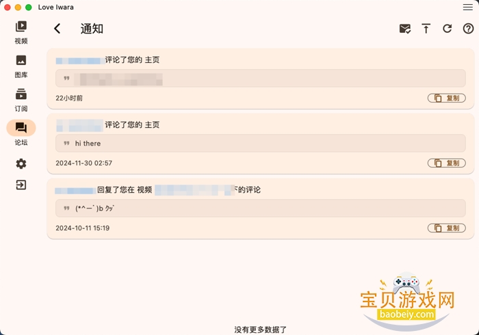 4、进入【论坛】界面,可以查看评论,回复评论,实时关注最新消息会话等
