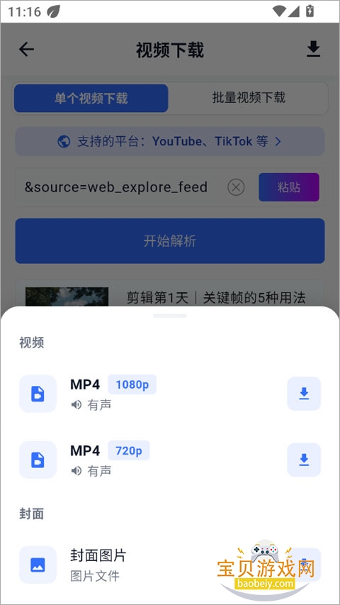 多平台视频支持: 兼容主流视频网站的链接解析,覆盖面广,实用性强。