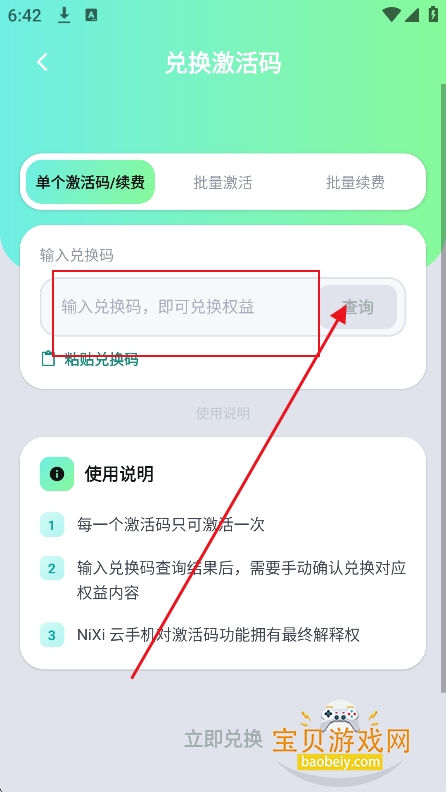 输入兑换码查询结果后,需要手动确认兑换对应权益内容