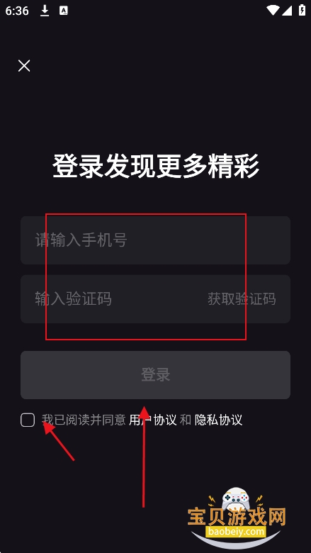 2、在登录界面,输入手机号,接收验证码,点击登录即可,新手机号自动注册为新账号