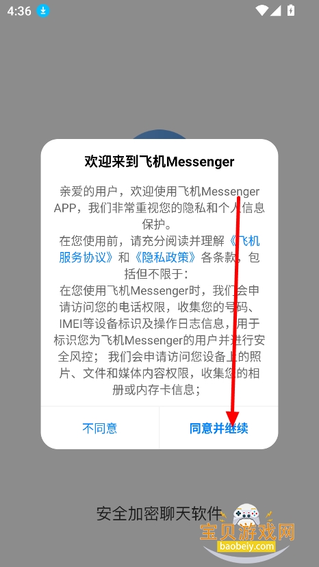 1、在宝贝游戏网下载安装飞机Messenger安卓版,点击【同意并继续】进入