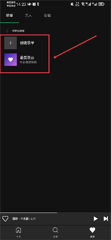 5、当用户听到好听的歌曲时,你可以通过创建歌单或者收藏来将喜欢的歌曲放在一起,这也能更方便你下一次的收听
