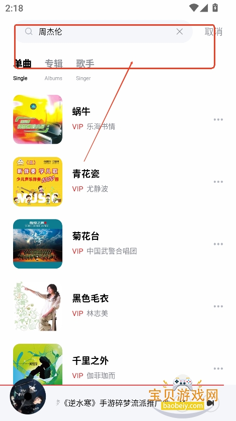 3、或者直接搜索框输入歌手,或者歌曲名,精准检索