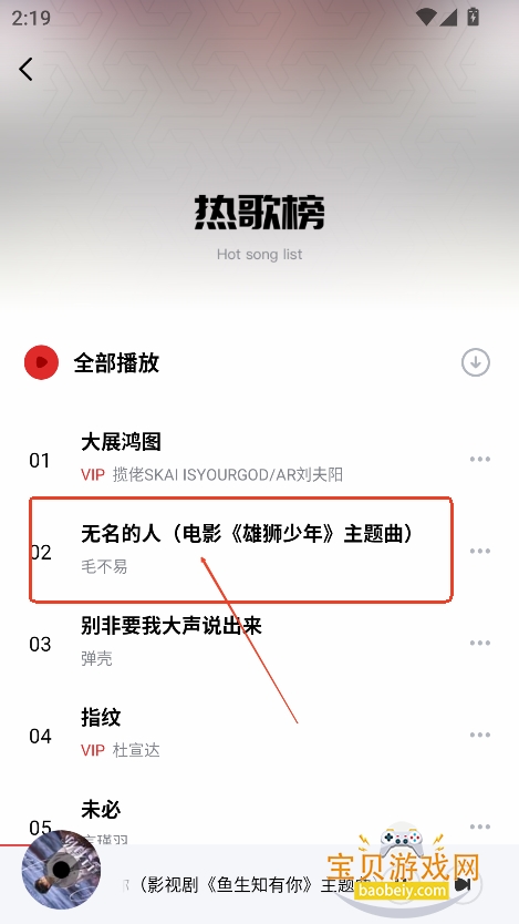 6、最后进入歌曲界面,点击播放就可以免费听歌了