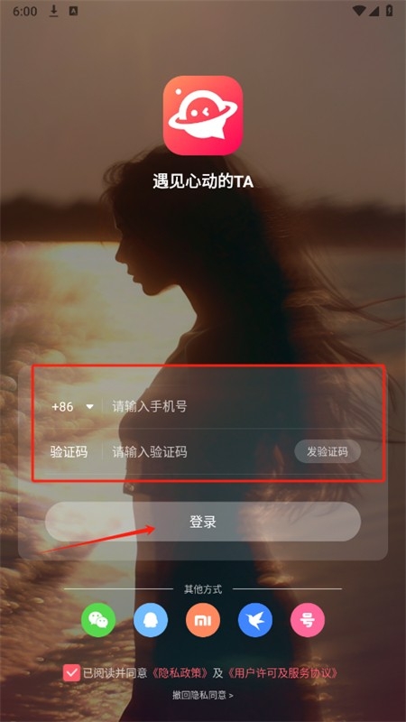 2、打开软件进入登录页面,输入手机号和验证码,同意相关协议政策后,点击登录即可快速注册