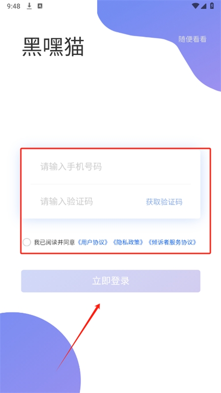 3、进入登录页面,输入手机号和验证码,同意相关服务协议政策后,点击立即登录即可